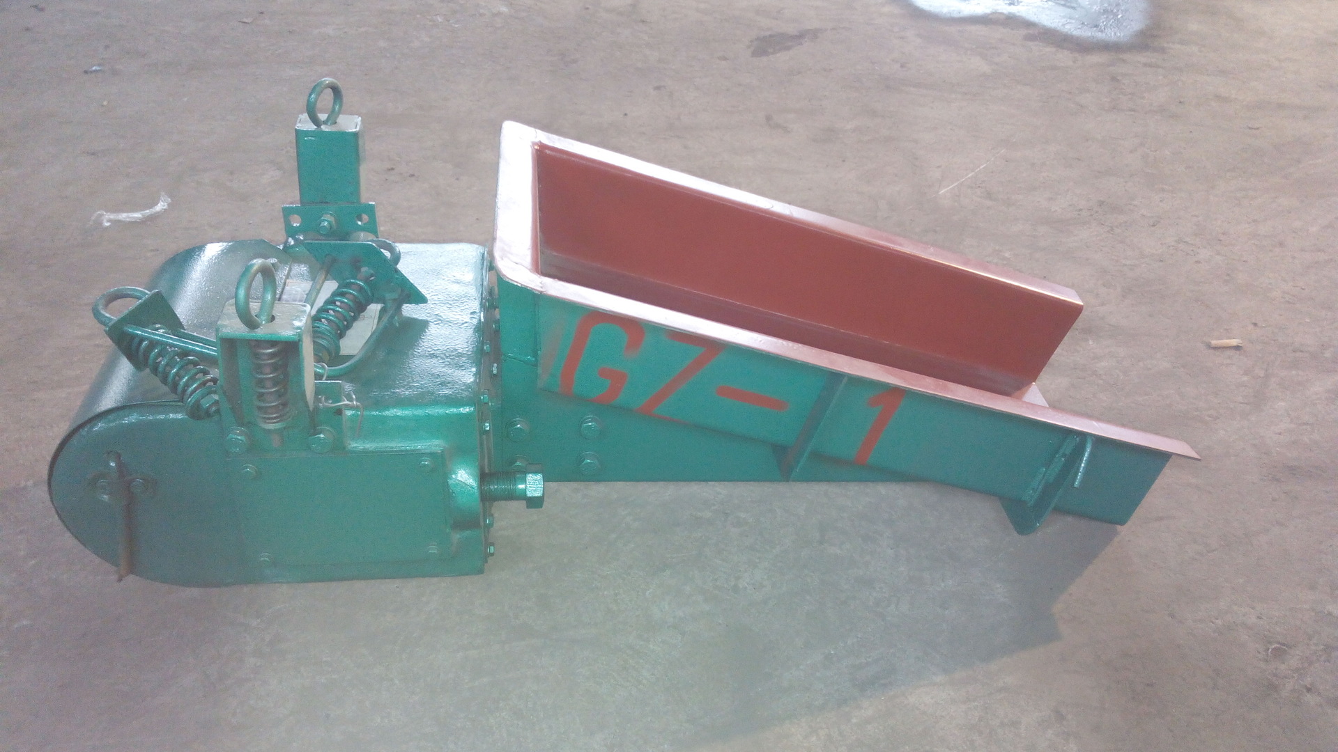 新陽機械廠生產GZ系列的電磁振動給料機廣泛應用于:礦山、冶金、煤炭、建材、輕工、電力、機械、糧食等行業中,用于把塊狀、顆粒狀及粉狀物料從料倉或漏斗中均勻連續或定量的給到受料裝置中去。例如,與帶式輸送機、斗式提升機、篩分設備、粉碎設備、研磨設備、擠壓設備等配套使用;也可用于自動控制流程中,實行生產流程的自動化。其體積小、重量輕、安裝方便、無轉動部件、不需潤滑、維修方便、工作頻率高、消耗電能少。