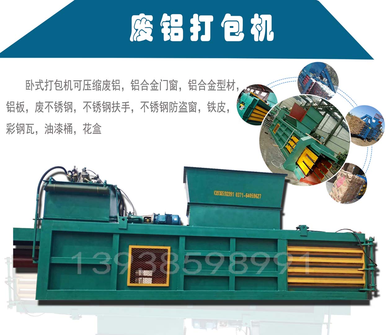 如今市場中出現了一款新型的臥式廢鋁打包機,它的面世無異于讓市場中重啟了一顆閃耀的行星,我們在生活中遇見了太多了的生活垃圾,這些有害物料有些可以回收的,但是有些是需要填埋的,可回收的利用都有哪些呢,比如,自行車外殼,易拉罐,廢鋁,鋁合金門窗,金屬薄鐵皮等廢品,這些廢品都是可回收再利用的,此款設備用著放心,它屬于一款節能環保設備,我公司特別注重環保這一塊,所以,生產的產品也是根據這個所考量的。如果你對新陽機械廠生產的新款設備有著不同的建議,都可以提出,歡迎你到新陽機械廠參觀。