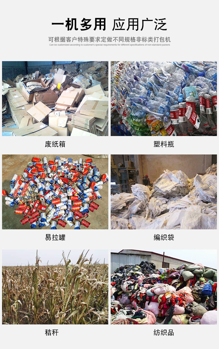 日前我在網上看到了很多客戶在一個評論區上問了很多問題,其中讓我很疑惑的是打包機物料包塊的尺寸為多少,這個怎么說,首先你要看你所購買設備的大小來衡量物料塊,我們可以推薦下兩種帶門和不帶門的這兩款價格便宜,而且適用范圍廣泛,帶門屬于側門開展過來,而沒帶門只需要你將物料塊直接弄出來就可以,而它所打的物料是稻草,秸稈,青貯,高粱桿,竹子等松散物料,而有門所打的就很多,比如,廢紙類,塑料類,廢鋁類,花盒,彩鋼瓦等廢物料均可打包,
